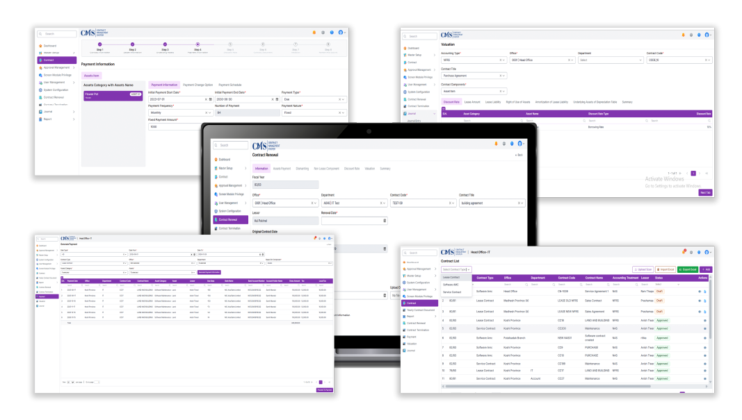 The Contract Management System (CMS) is a simple, secure, and smart platform that helps you handle every step of a lease; from drafting to renewal; all in one place. It’s fully compliant with NFRS 16, reduces manual work, sends automatic reminders, and keeps your data safe and organized.
